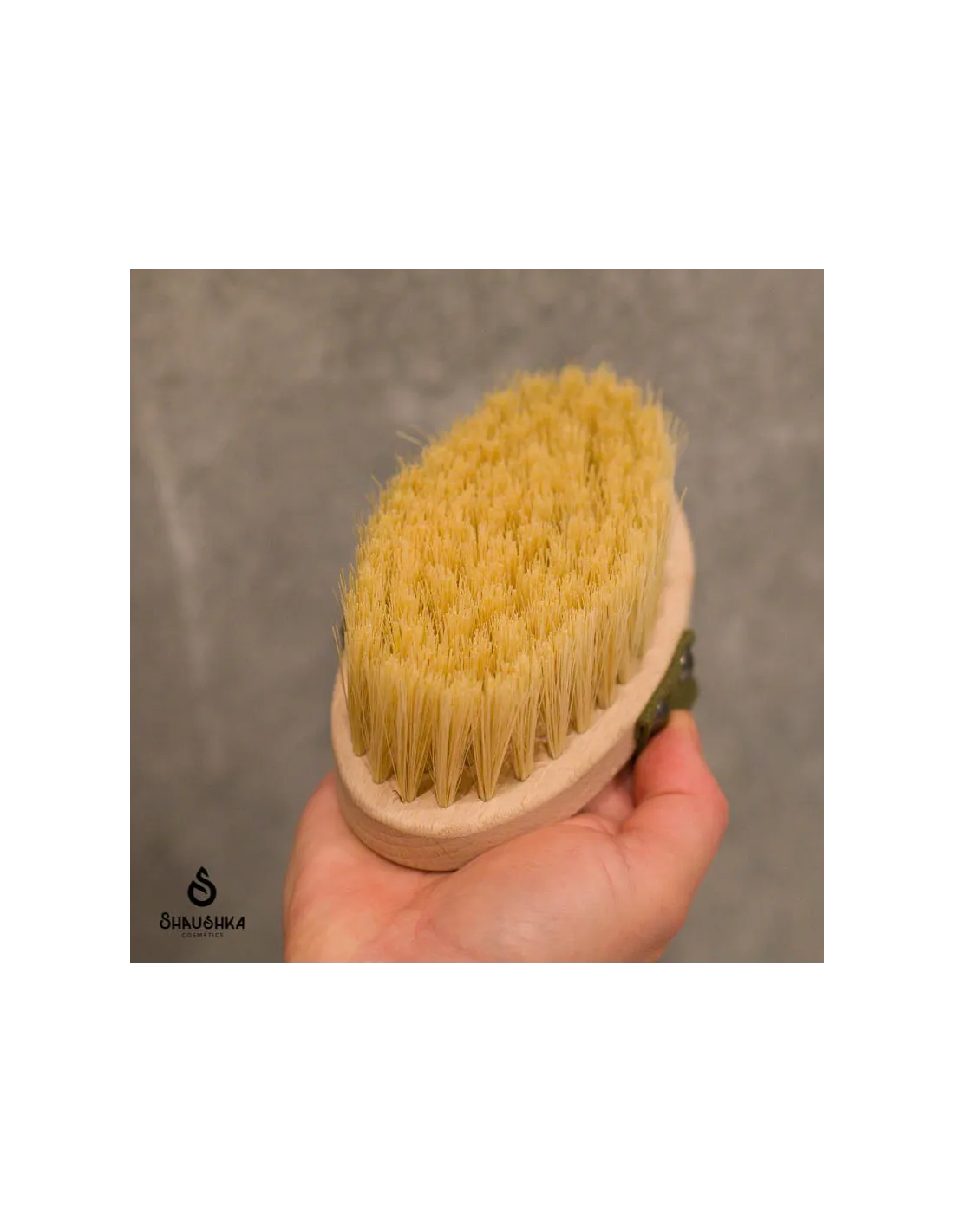 Naturalna szczotka do mycia i masażu ciała wykonana z drzewa bukowego i włosia agawy doskonale ujędrnia i zmniejsza cellulit!
