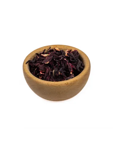Ekologiczny hibiskus w formie parzonej tworzy napój o pięknej rubinowej barwie i o lekko kwaskowatym smaku, który orzeźwia i może być pity o każdej porze dnia.