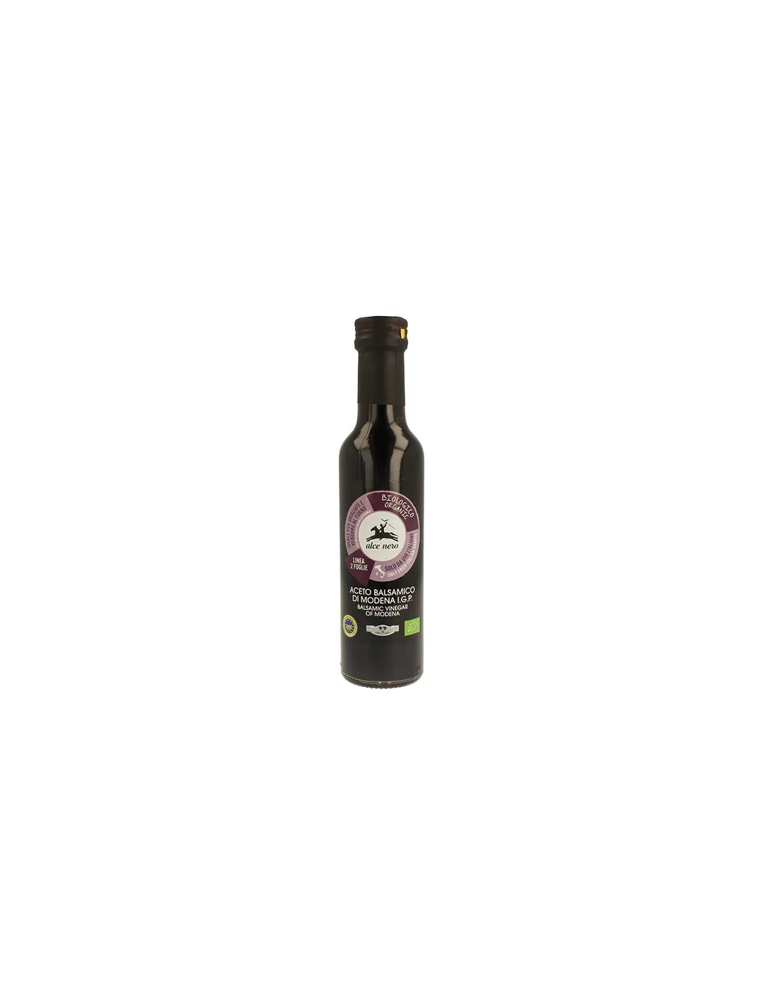Ocet balsamiczny Alce Nero produkowany jest ze starannie wyselekcjonowanych, ekologicznych winogron odmiany Emilian. Leżakujący w tradycyjnych drewnianych beczkach.