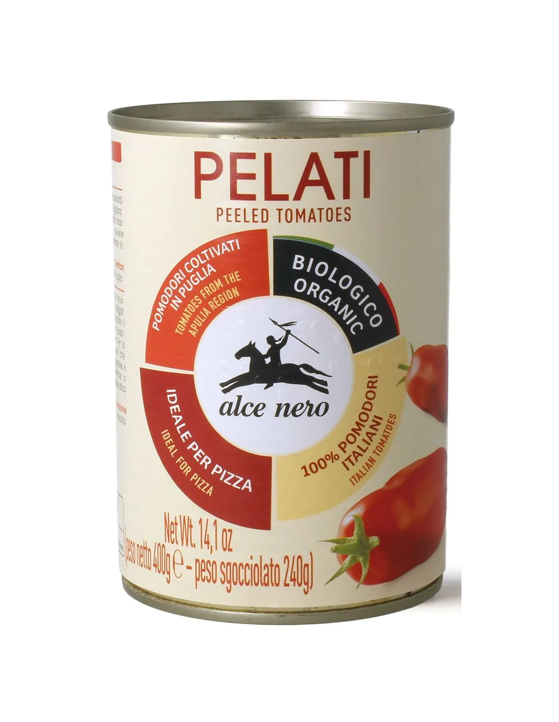 Ekologiczne pomidory pelati Alce Nero to najwyższej jakości, dojrzałe w słońcu włoskie pomidory, obrane ze skóry i zanurzone w naturalnym soku pomidorowym. Uprawiane w sposób zrównoważony i bez użycia chemicznych środków ochrony roślin, zachowują pełnię smaku, aromatu i wartości odżywczych.