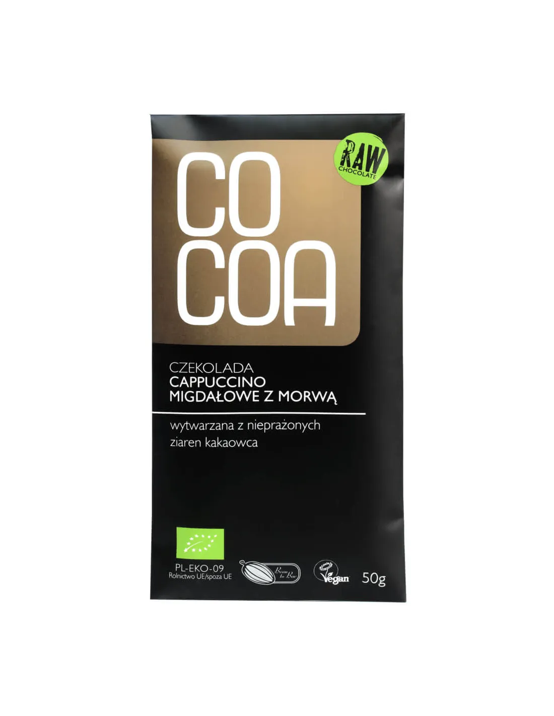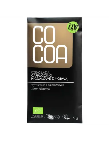 Wegańska surowa czekolada firmy COCOA o smaku migdałowego cappuccino z morwą.
